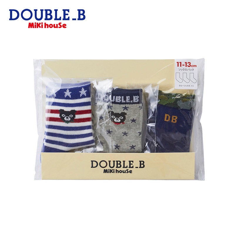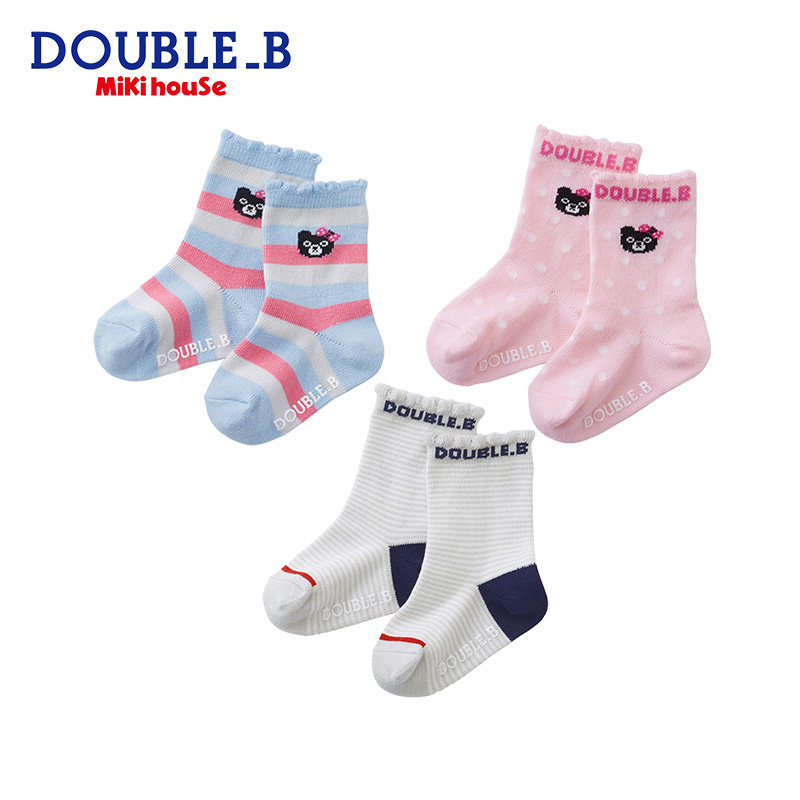 Middle cylinder Sox 3 Double suit Mikihouse Double_B Small black bear motif male and female children use set goods all year round