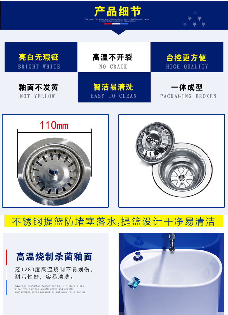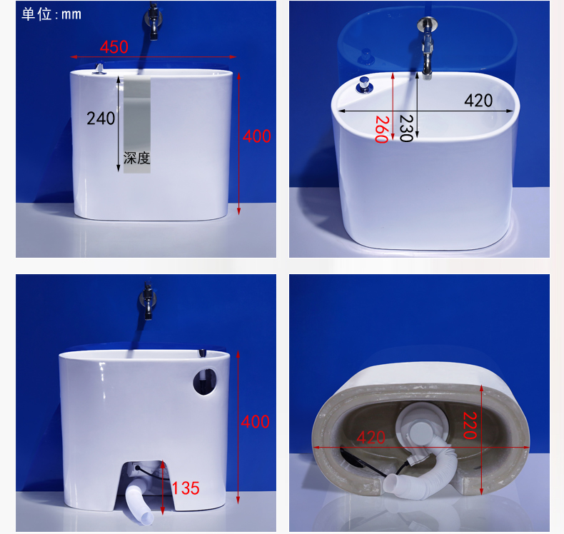 You'en ceramic basin home bathroom balcony small sink floor to ceiling mop bucket size wash wash integrated sink