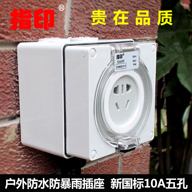 Outdoor waterproof socket fingerprint outdoor rainproof plug 10A five-hole switch plug row household flapper row plug 16A