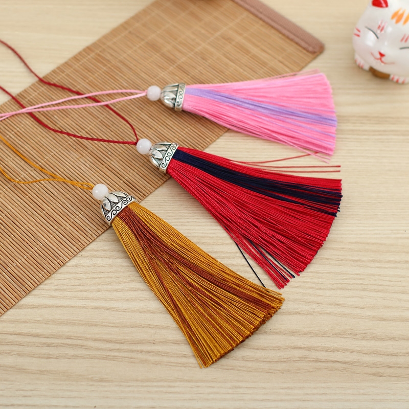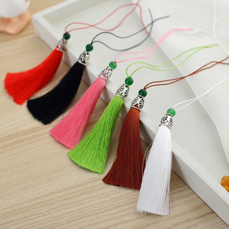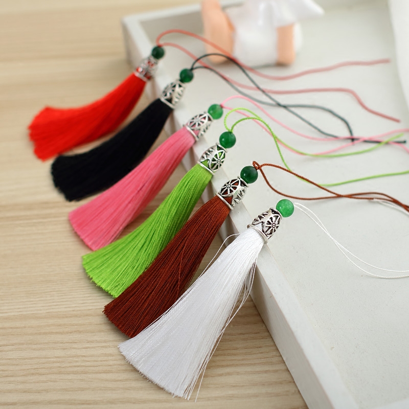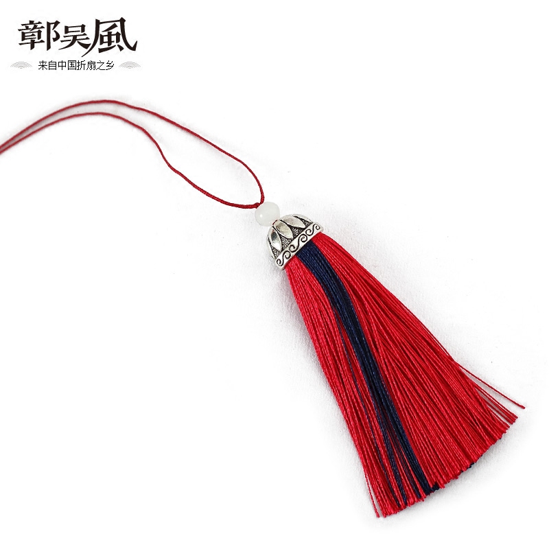 Colorful fan ear tassel ear folding fan with metal head jade bead ear
