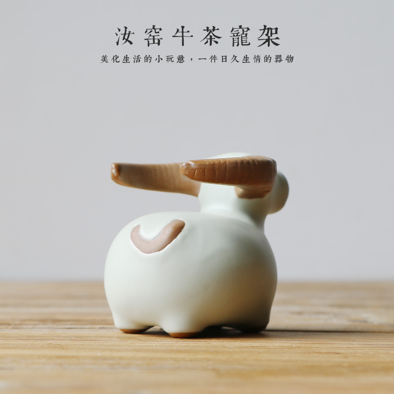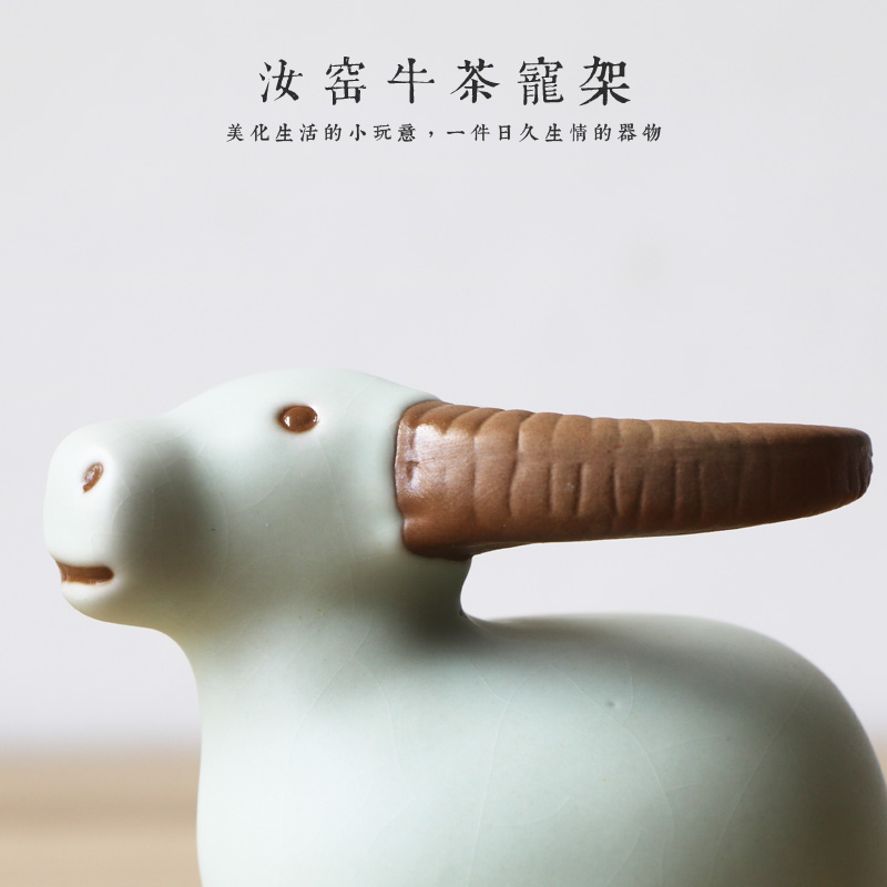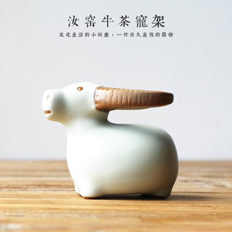 Ru kiln boutique purple sand Xiaoxiang cow tea pet Boutique creative tea filter ornament open piece Ru kiln kiln ceramic tea play