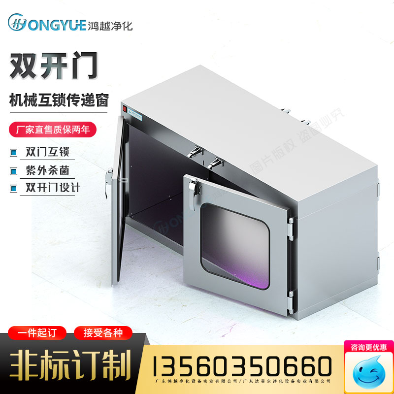 Double door delivery window 304 stainless steel mechanical protective lock germicidal lamp electronic interlock dust-free medical transfer window