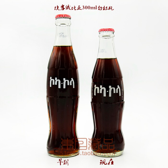 Long body early rare old model Ethiopian Coca-Cola 300ml white label text bottle glass bottle