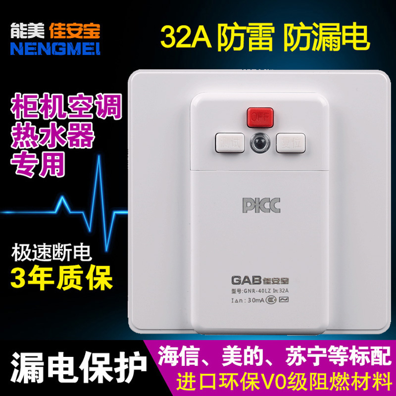 Jia Anbao 32A switch socket leakage protector Water heater air conditioning socket air open leakage protection GAB household