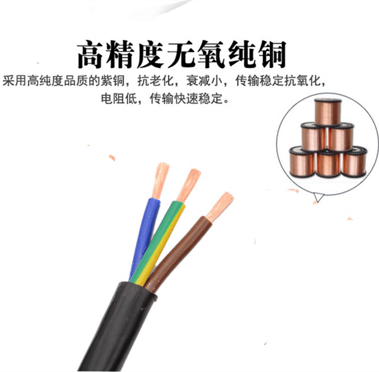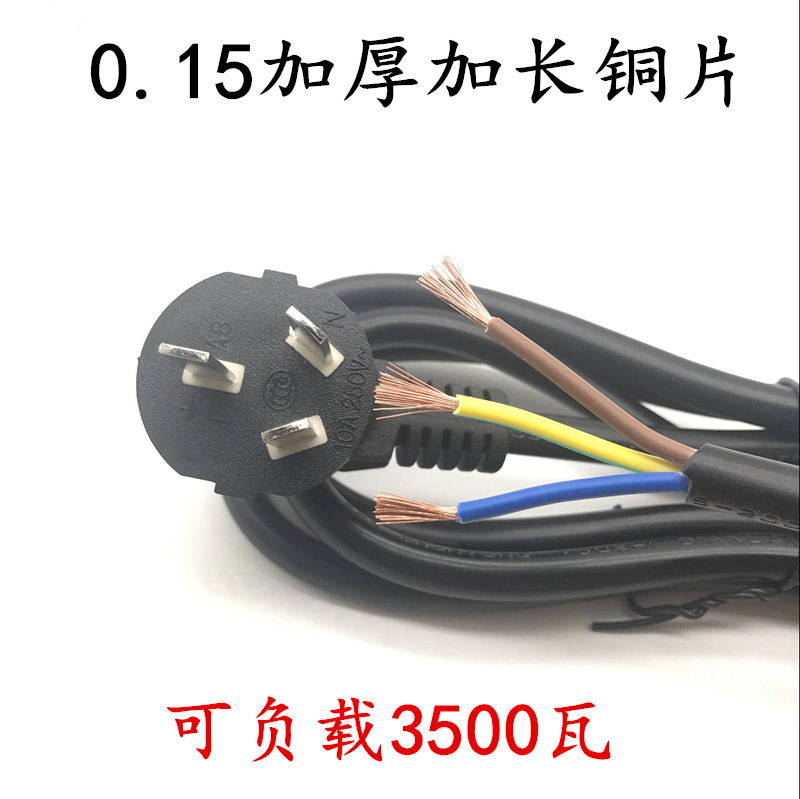 Pure copper national standard 3*1 5 square three-core power cord three plug connection cable three holes three feet three plug power cord