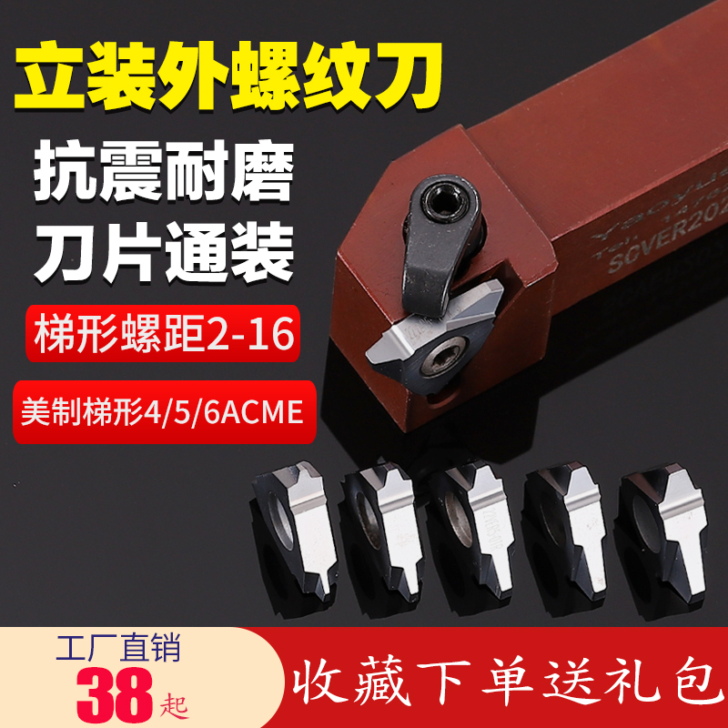 Threaded turning tool vertical threaded shank threaded knife trapezoidal 40-degree worm threaded turning tool 30-degree t-type threading knife