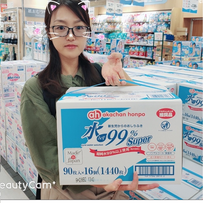 Japanese Akajia 99 pure water baby baby baby with hand ass whole body wet towel moisturizing and soft tissue 90 sheets