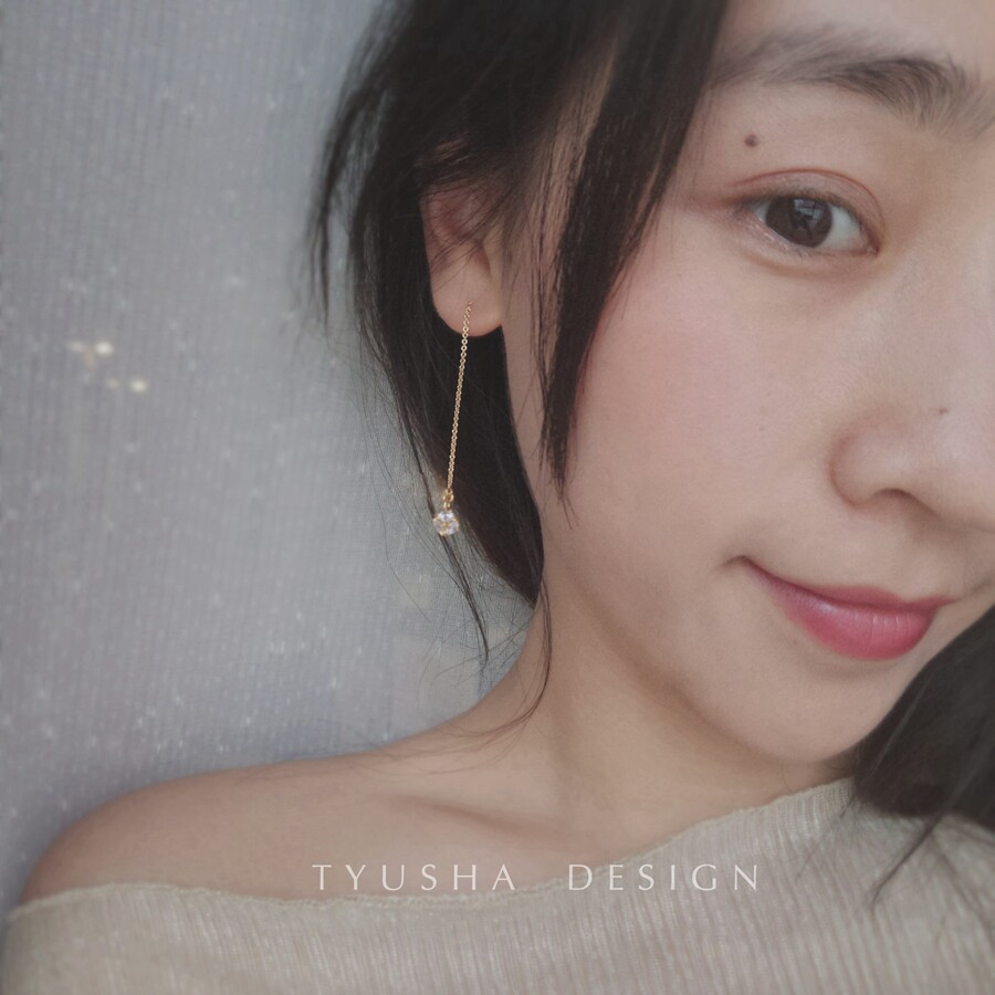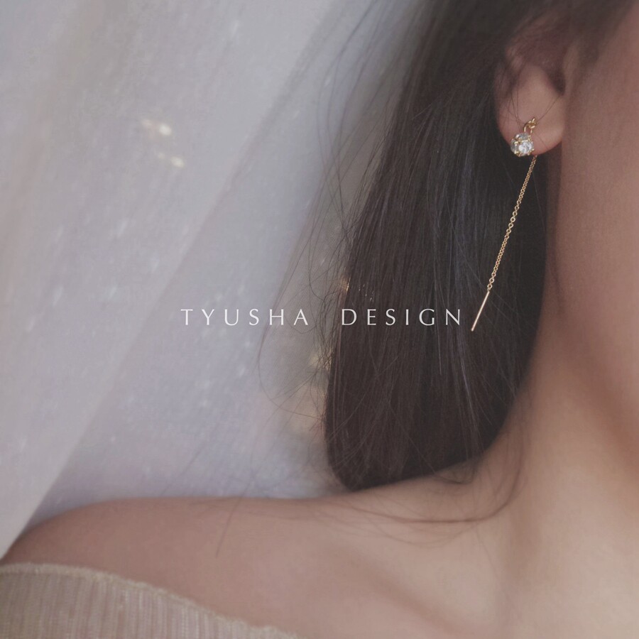 TYUSHA sparkling mini inlaid zircon dribbling ball American imported 14K gold-studded earrings female