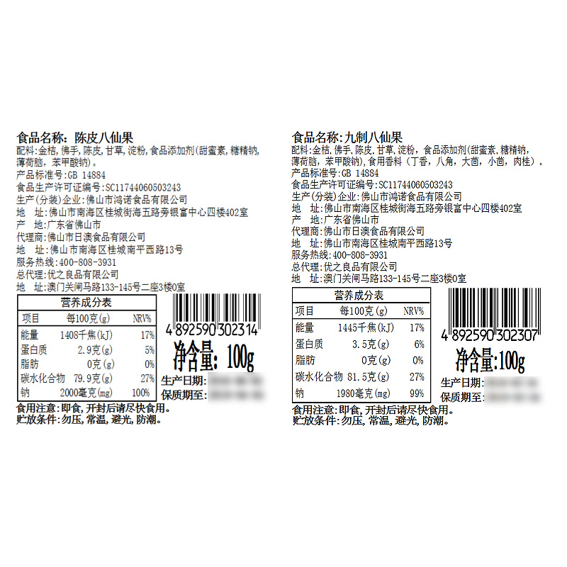 Original eight immortals fruit 100g*2 Thick flavor Eight immortals fruit 100g*2 original thick flavor