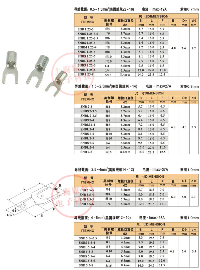 1000pcs SNB Series Fork Bare Tip 1 25 2 3 5 5 5 TU Model Cold Press Wiring Terminals Purple Copper