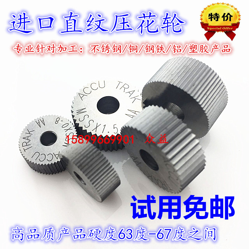 Imported high hardness stainless steel plated titanium straight embossing wheel straight grain knurling knife embossed 10 outer diameter 15 15 diameter 20