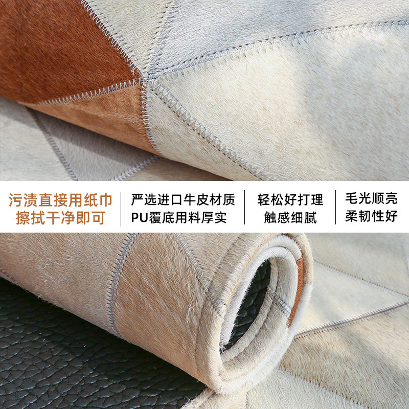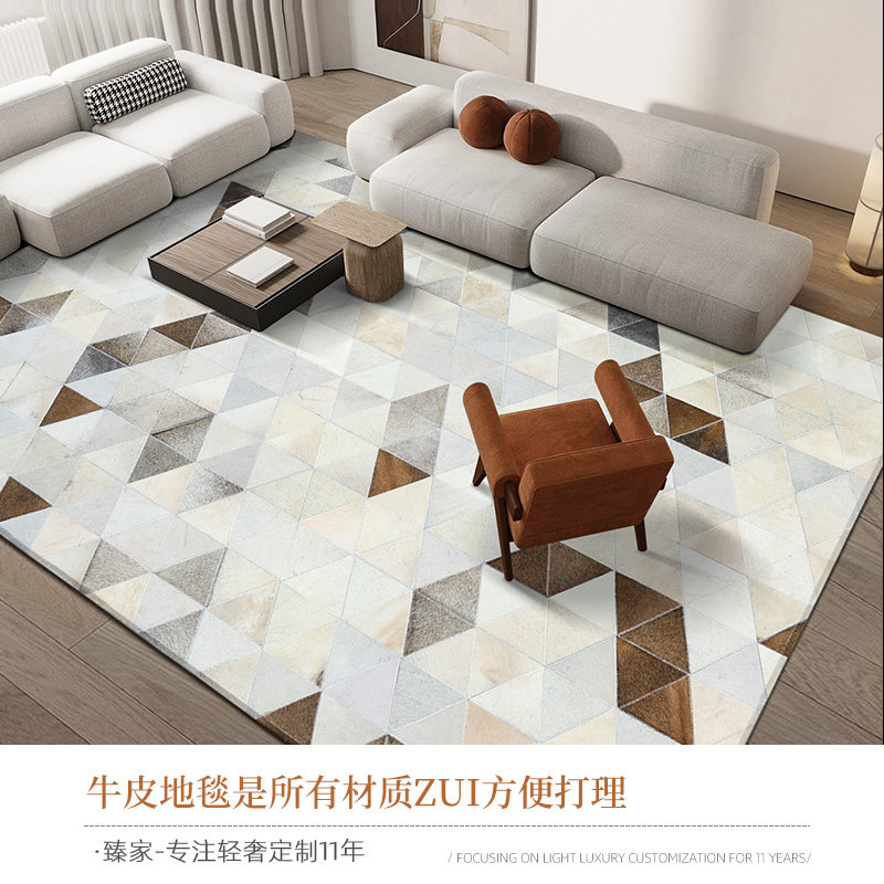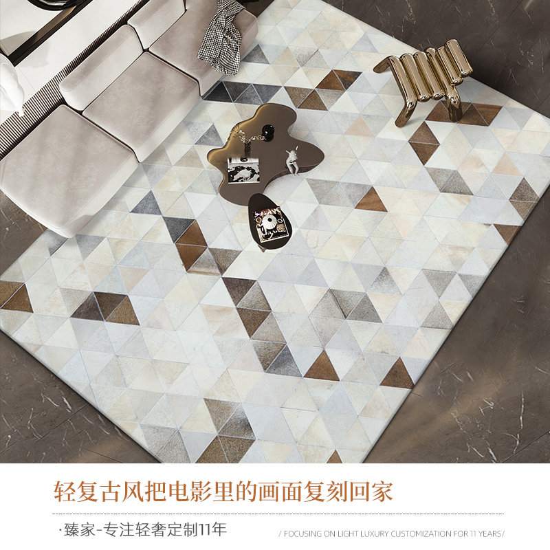 Imported Cow Leather Splicing Carpet Nordic Style Geometric Drawing Room Sofa Tea Table Cushion Bedroom Bedside Blanket Rectangular Customisation