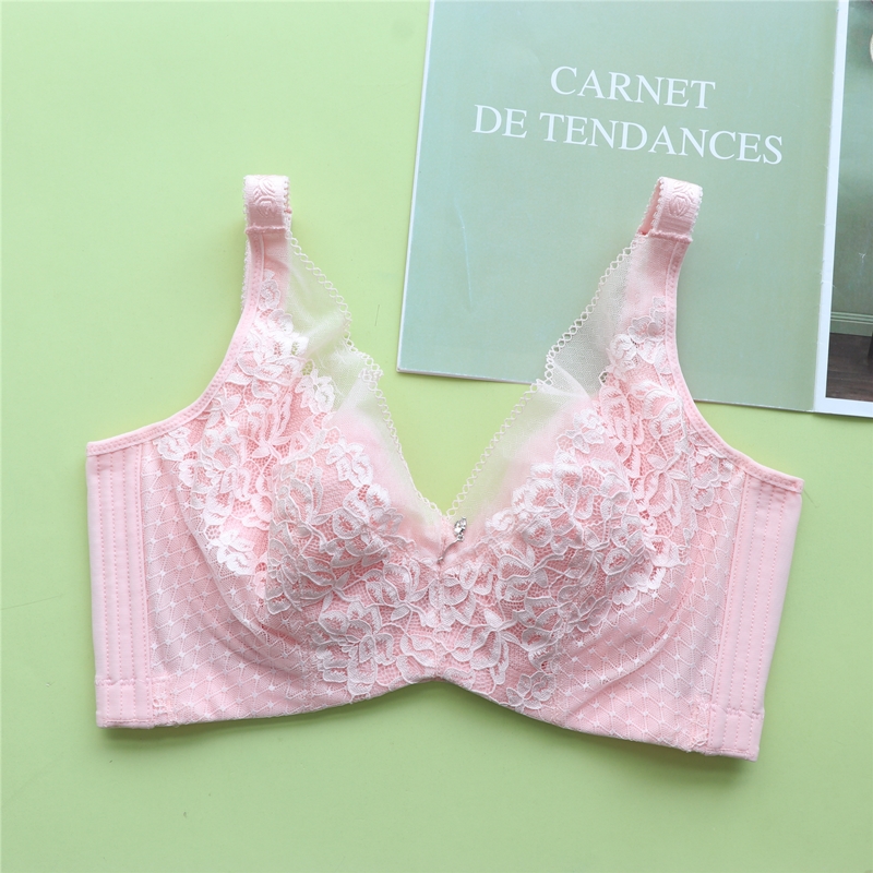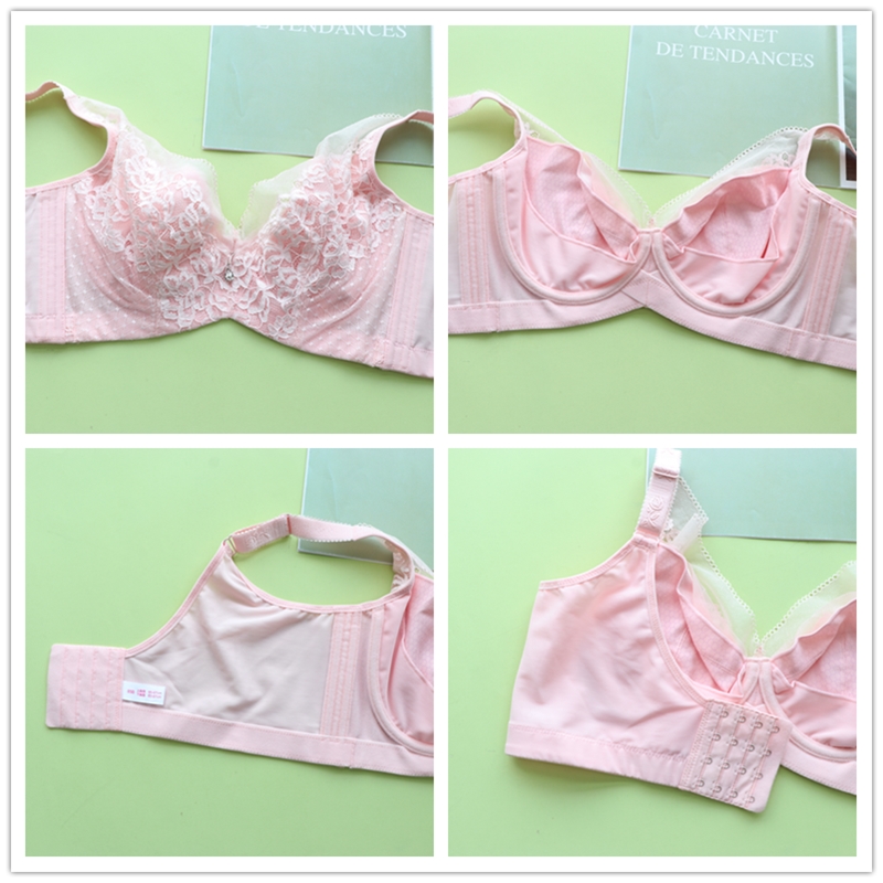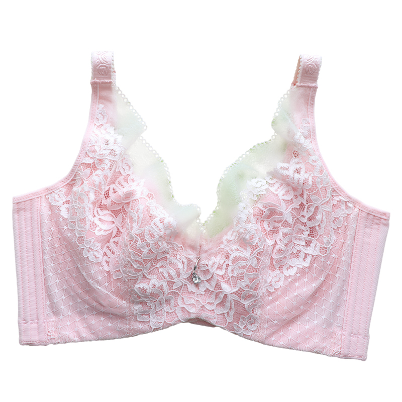 Adjustable soft underwire underwear women's breathable sexy lace ultra-thin full cup side breast bra 90B90D