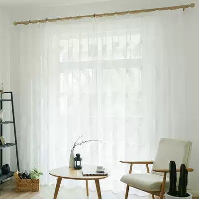 Simple solid color white feather embroidered gauze curtain finished product custom living room bedroom balcony bay window semi-blackout gauze curtain