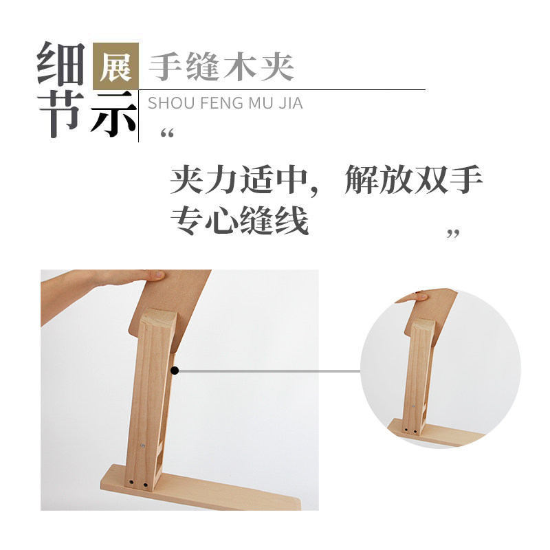 Handmade leather DIY clip mouth one-piece hand-sewn wooden clip hand-sewn leather wide wooden clip beech fixed wooden frame