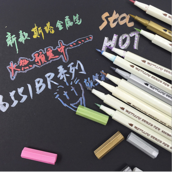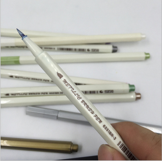 Black card smooth surface color soft brush diy metal paint pen small letter album hand account brush head white super bright pen