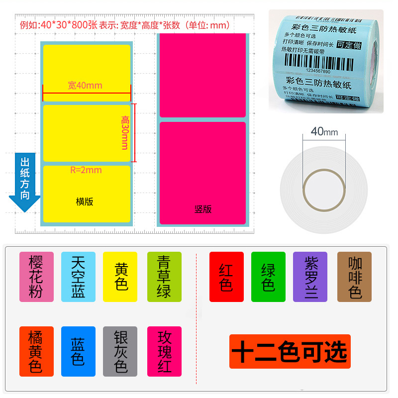 Leitlelli triple anti-color thermal sensitive paper 80 * 60 * 500 sheets of adhesive label note code print sheet Express Logistics face single blank Sticker Material Card Inbound Photocopy Paper Custom Print