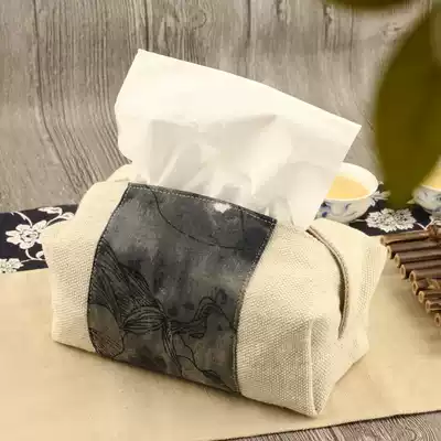 Handmade retro cotton and linen cloth tissue box Japanese simple creative toilet paper box Tea room living room car storage bag