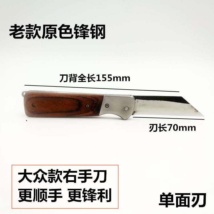 Wooden handle white steel wooden handle folding personality BAO WEN new stainless steel pointed stainless steel flat mouth eighteen sub upgraded version of new peak steel old front steel