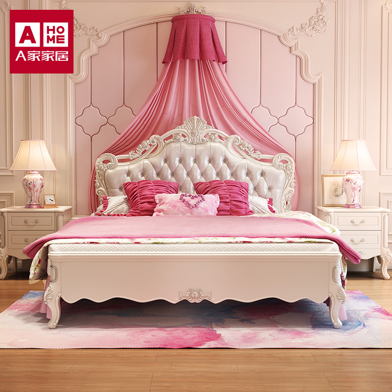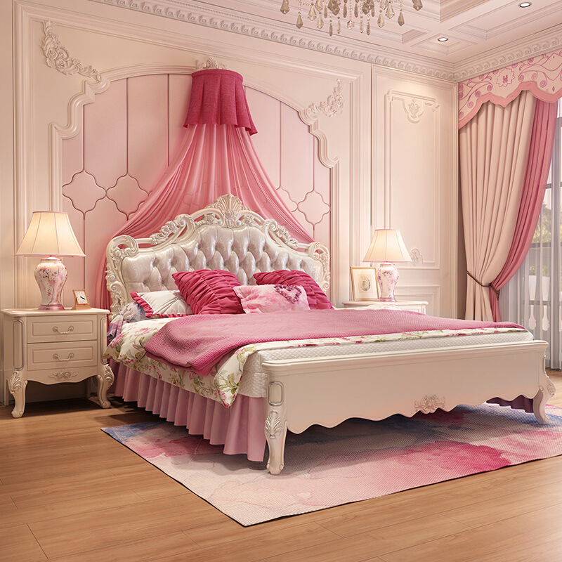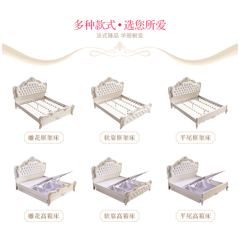 A family furniture European-style bed storage bed 18 meters French carved double bed princess bed luxury master bedroom wedding bed clear