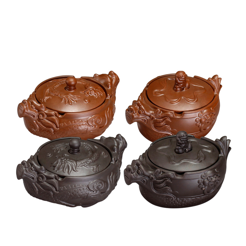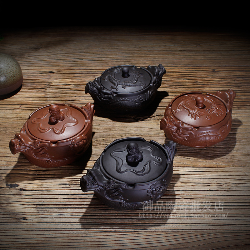 Yixing purple sand practical ashtray with lid sangyong dragon boat ornaments tea play tea pet creative retro purple sand saucer