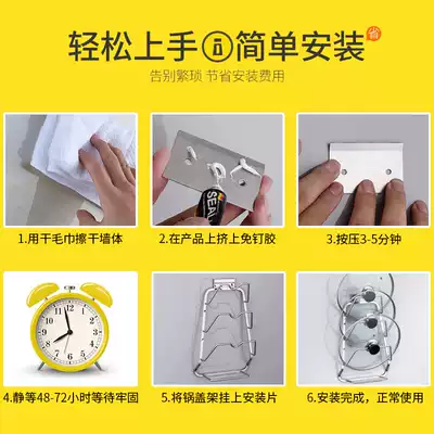 Kitchen pot cover storage hanging wall-mounted pot rack storage 304 stainless steel non-perforated sticky plate shelf household