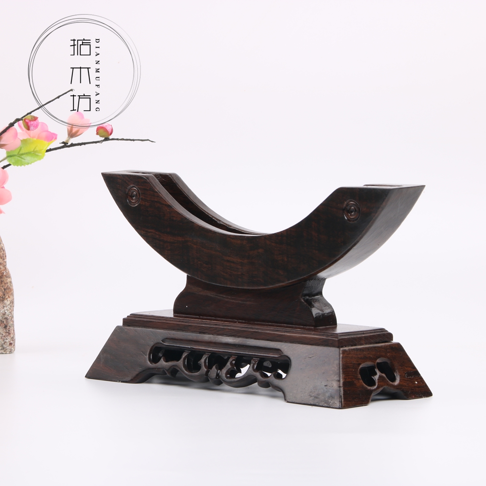 Red Wood Black Catali Wood Carved green buckle base jade sheet Decorative Porcelain Pan Base Pu-erh Tea Cake Nursery shelf