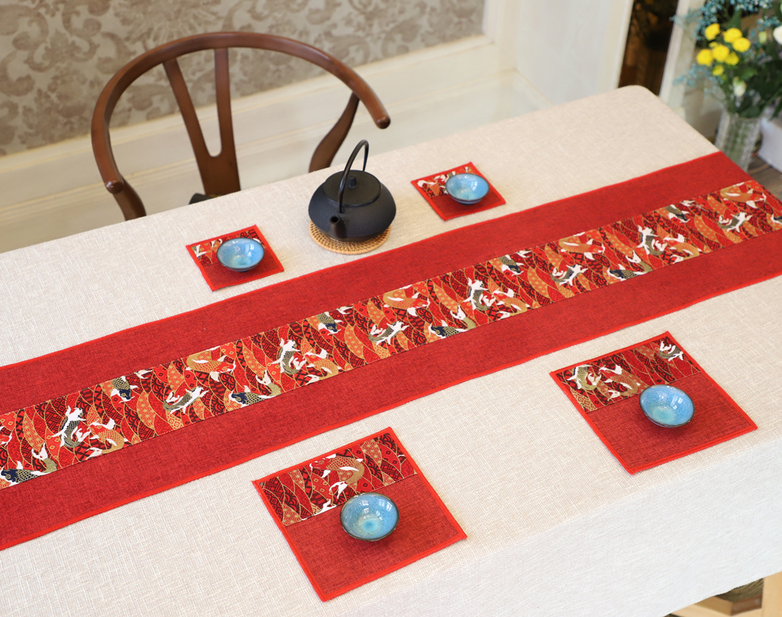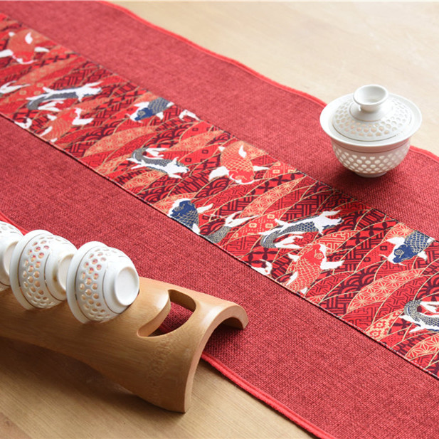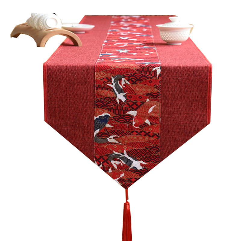 Festive Red Table Flag New Year Chinese Knot Wedding Wedding Wedding Wedding Celebration Table Cloth Art Tea Mat China Wind Cotton Linen Vintage Strips