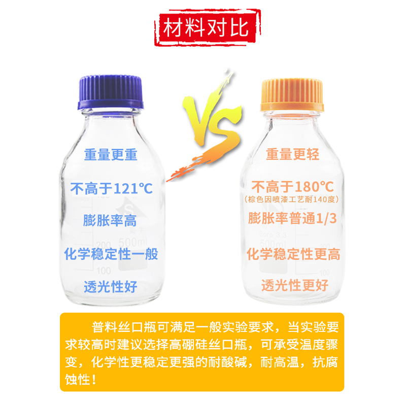 Shu cattle blue cap reagent bottle silk mouth glass bottle high borosilicate brown reagent bottle screw scale sealed sample bottle