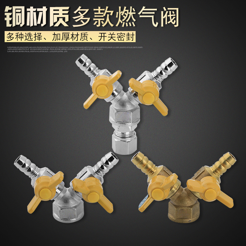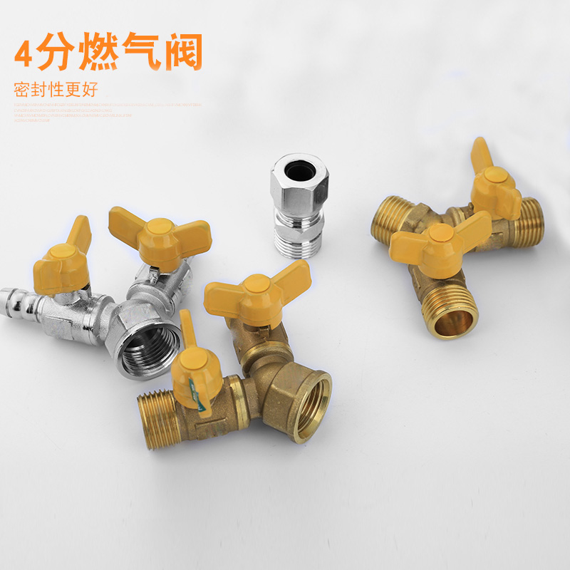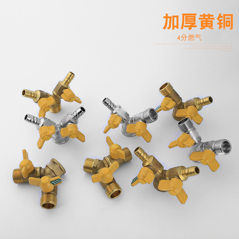 Gas valve tee 4 sub full copper thickened gas valve gas ball valve switch inside and outside silk pagoda mouth valve