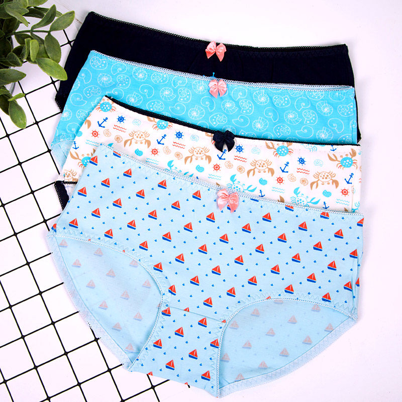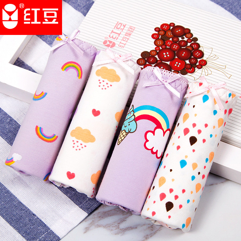 Red bean panties ladies cotton mid-low waist briefs boxed large size shorts head girl student shorts cotton panties