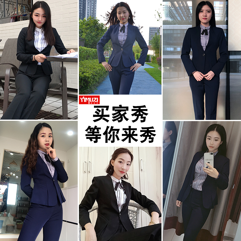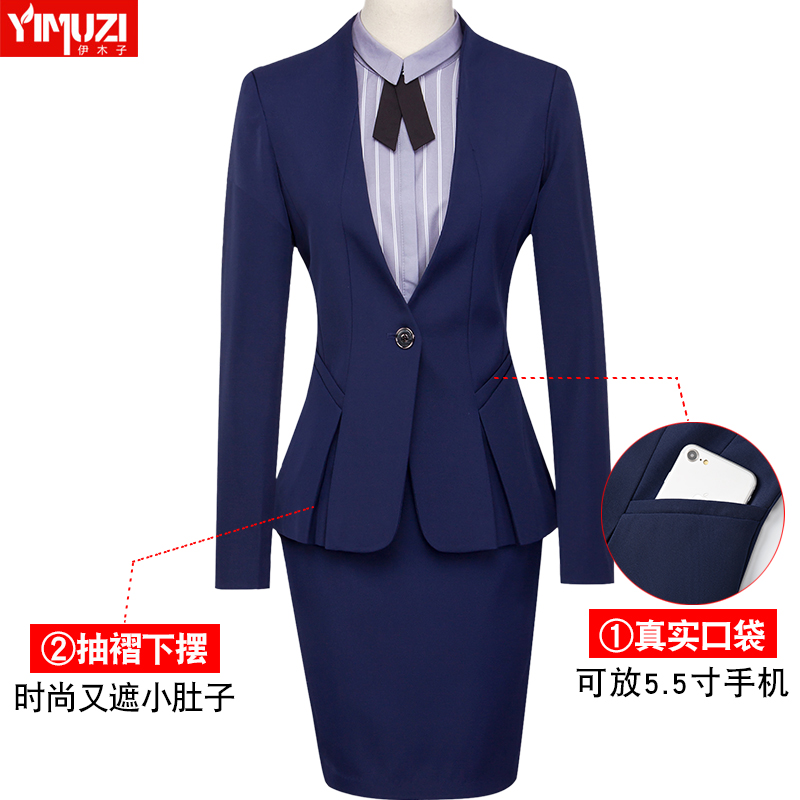Professional wear women's fashionable temperament blue suit suit high-end suit formal wear tooling interview president work clothes autumn