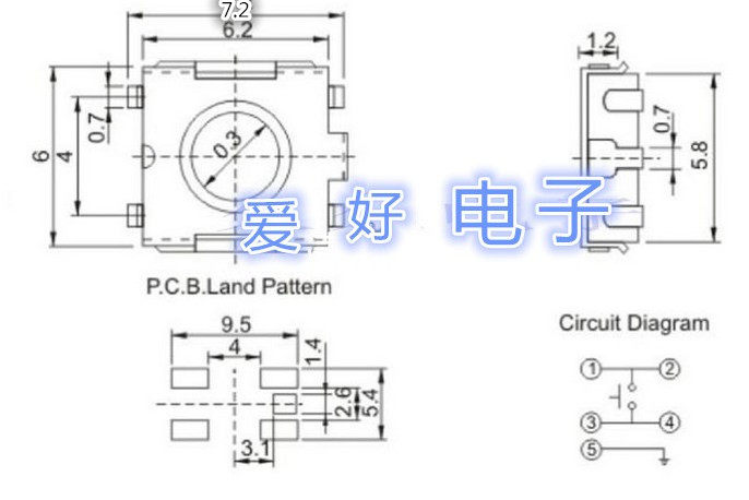 Original 6*6*2 5MM touch button switch 5 five feet black LCD display fretting patch 6x6x2 5