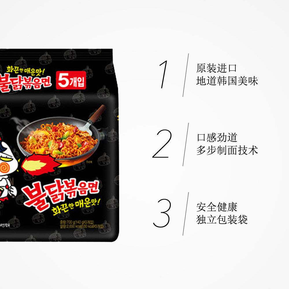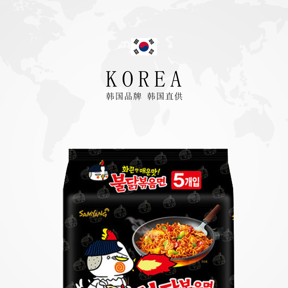 South Korea Three-bred imported super spicy turkey noodles 5 lids * 2 (10 packs) net red square noodles instant noodles strips of noodles-Taobao