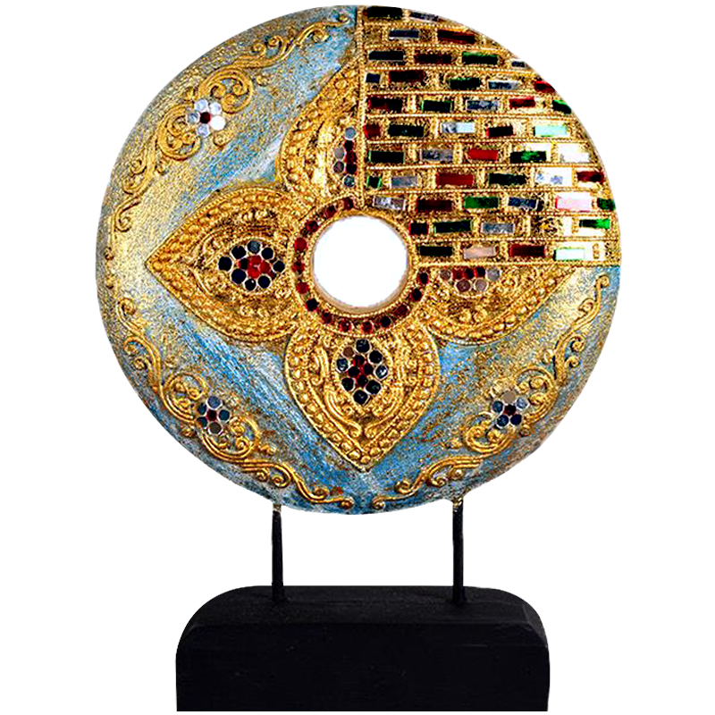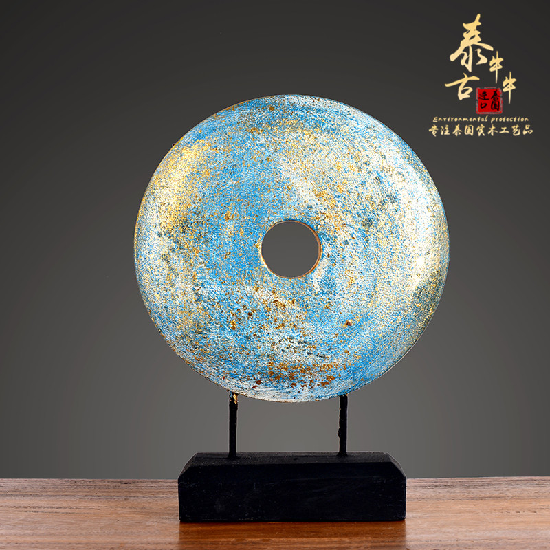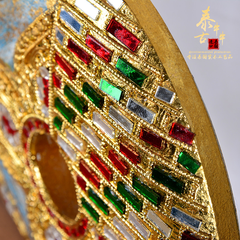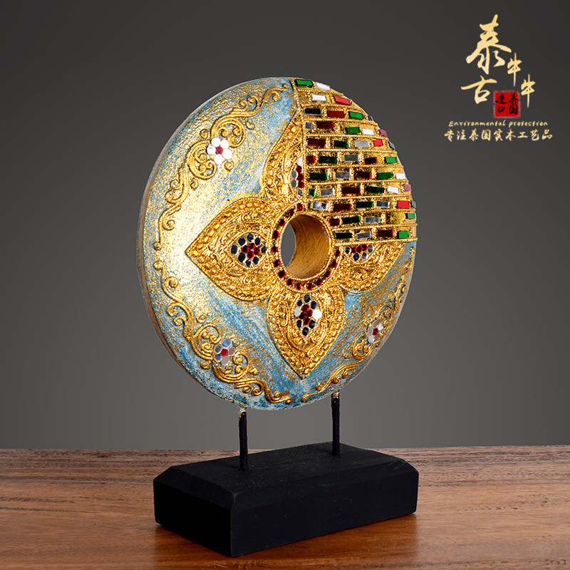 Southeast Asia home decoration ornaments Thailand solid wood craftsmanship lucky round gold patch lens wedding gifts
