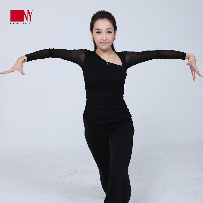 Morden dance-dance blouses female clinched collar tennis sleeves Nart new national standard dance cotton rehearswear long sleeve thin yarn