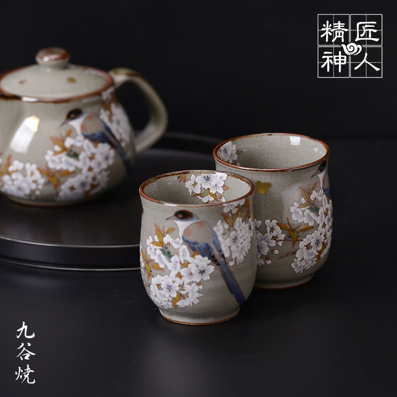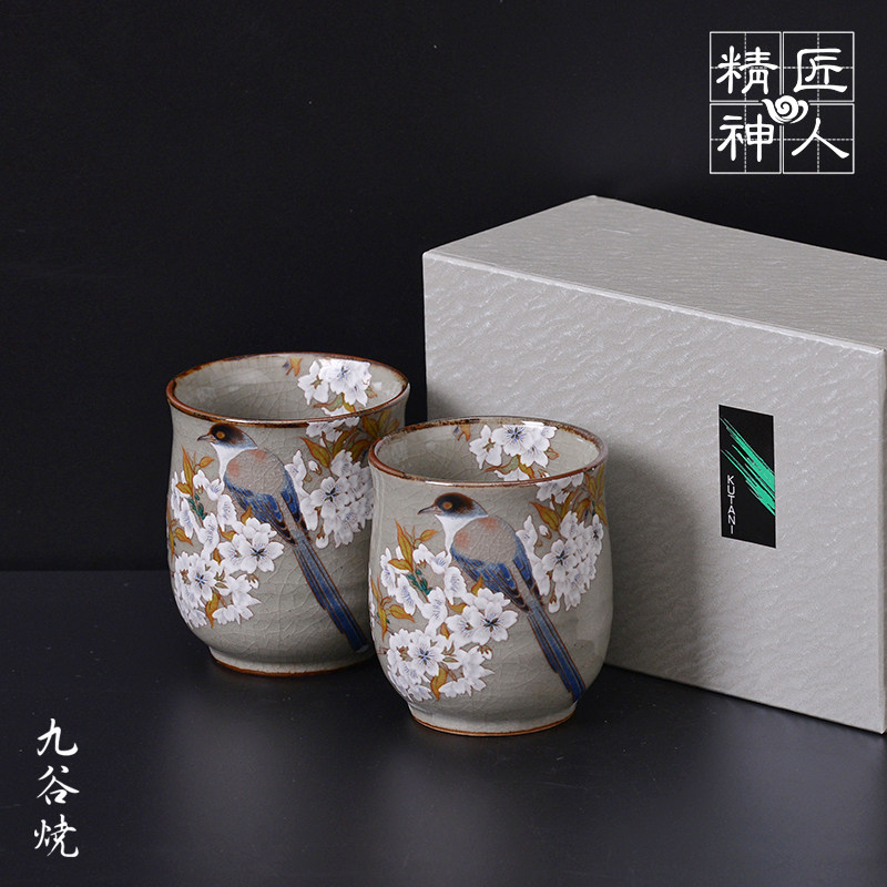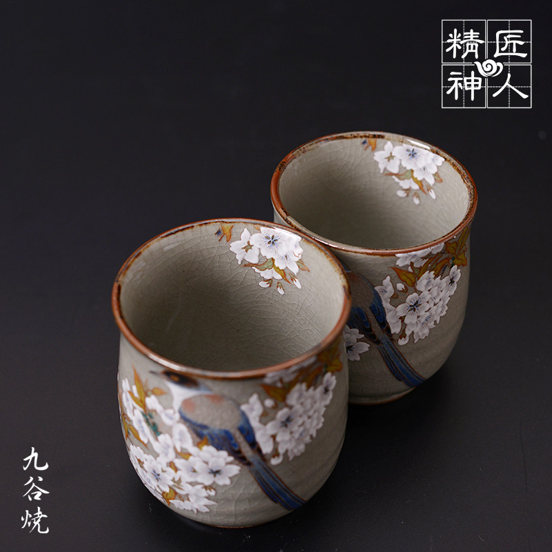Spot Japan Jiu Yaki painted couple Cup gold foil cherry blossom tit map ceramic ice crack tea cup tea cup