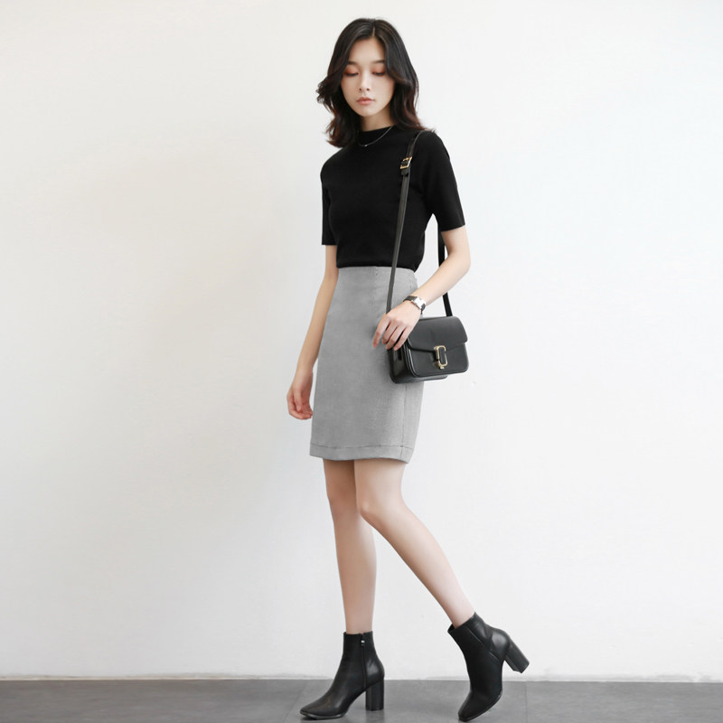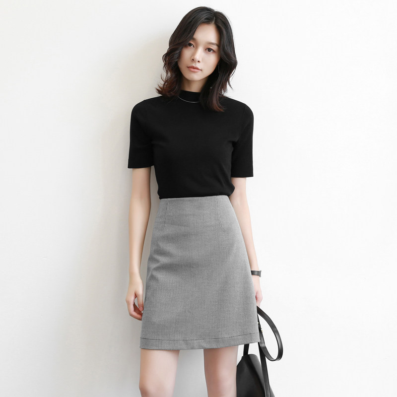 2021 spring and autumn new temperament chic houndstooth skirt commuter slim high waist thin hip skirt short skirt