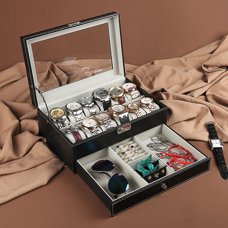 Double-deck Watches Containing Box PU Leather Watches Display Case Large Capacity Jewelry Containing Boxes Multi-Ornament Finishing Boxes