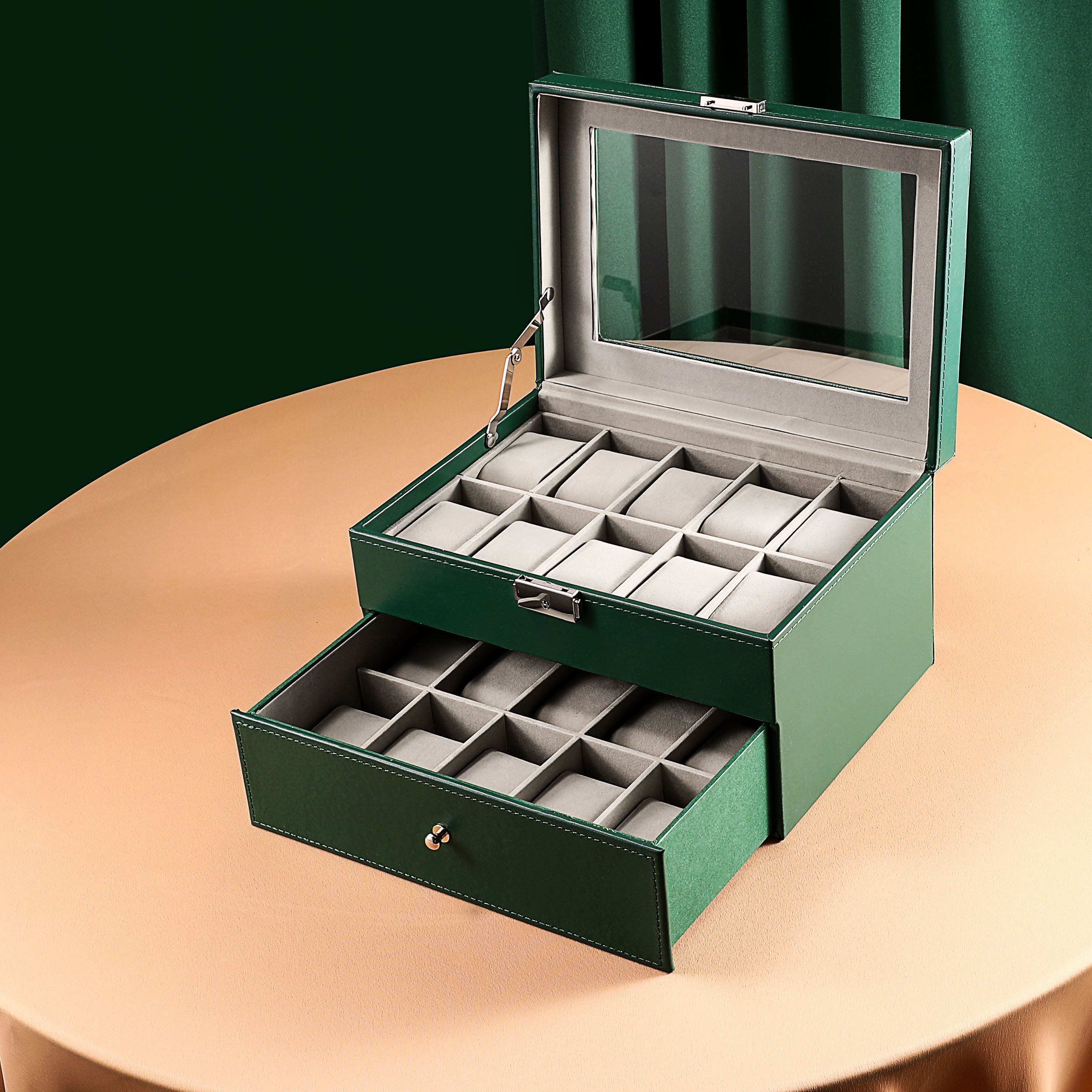 Double layer 20 Watches Box Black Double 20 Watches Box Coffee Double 20 Watches Box Ink Green Double watches First accessories box Coffee Double Watches First Accessories Box Black Double watches First decoration Box Ink Green