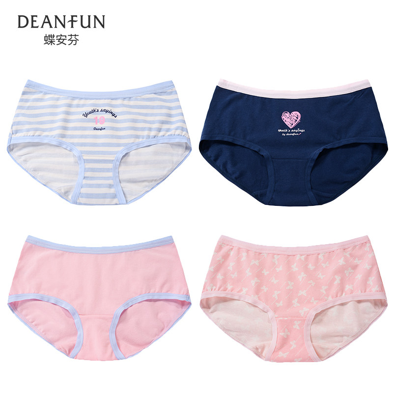 Butterfly Anfen Autumn Winter Comfort Cotton Cute Mid Waist Flat Corner Lifting Hip Lady Triangle Soft And Skin-to-skin Breathable Underwear 4 strips