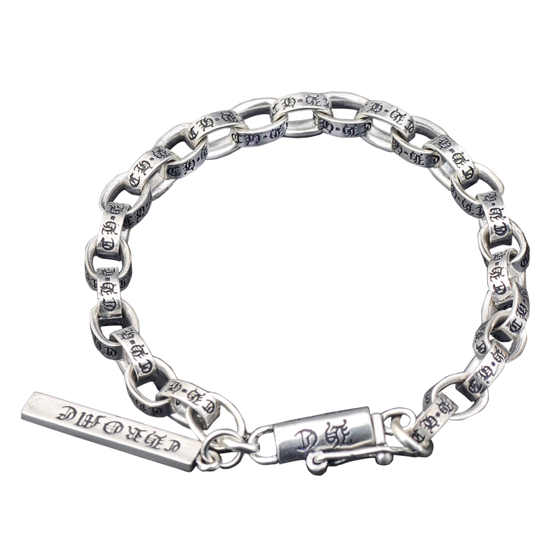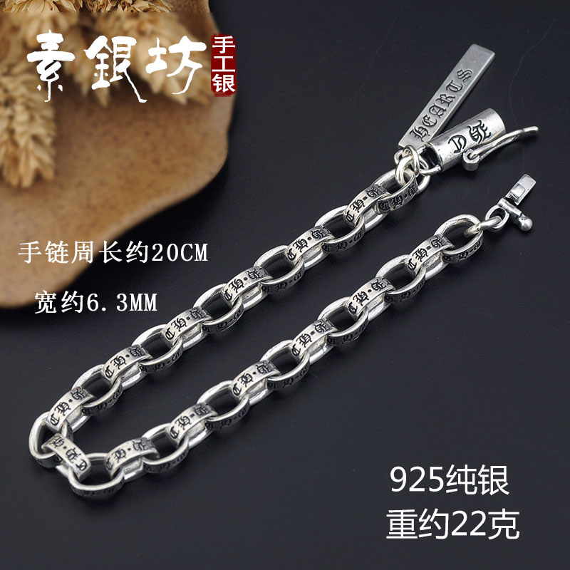 Pure Silver Alphabet Handmade 925 Personality Cross Ring Male and female Lovers Chain Thai Silver Retro Wind Wrist Silver Bracelet silver bracelet