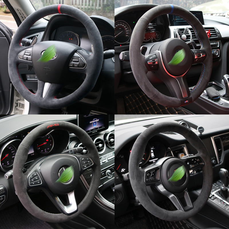 Vanxi Alcantara Steering wheel cover Hand stitched fur for BMW Mercedes Audi Foss Toyota Honda