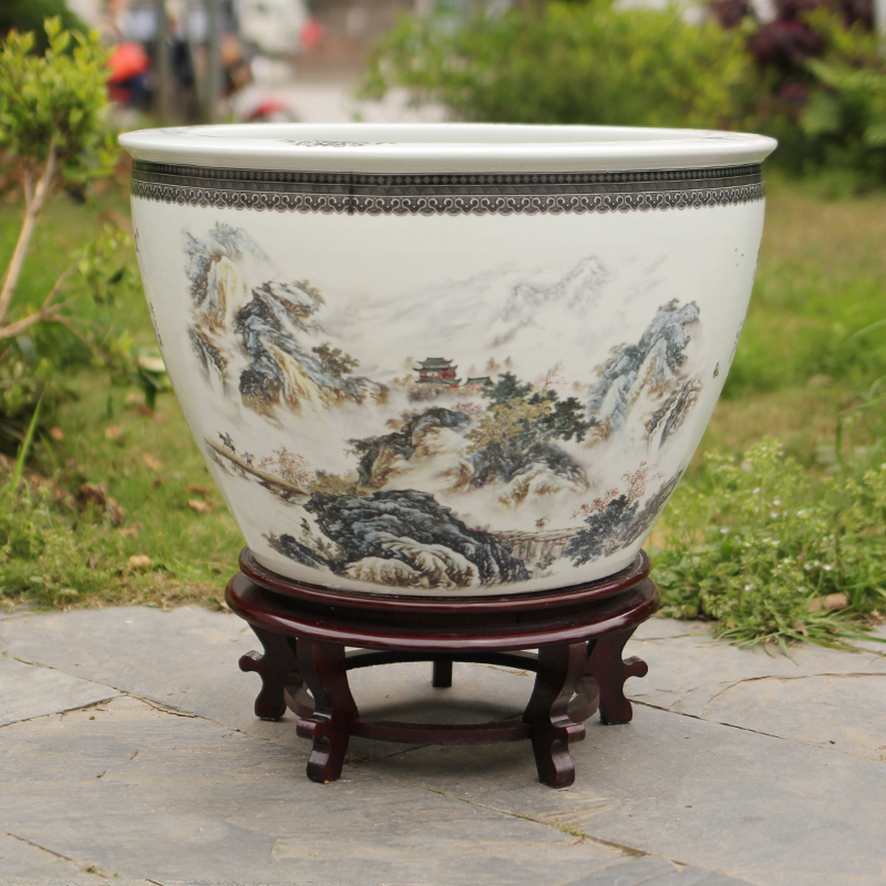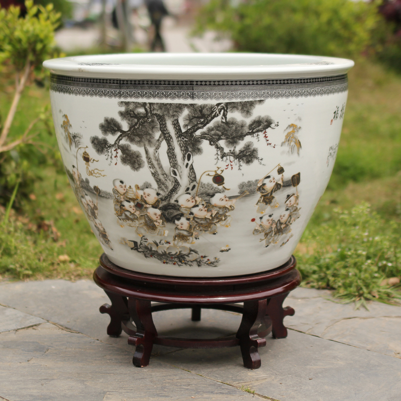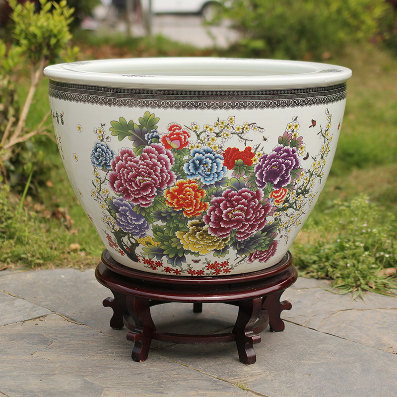 Jingdezhen Ceramic fish tank fish tank cylinder Sleeping Lotus Flower Pot Lotus Flower Pot Lotus Turtle Basin gold fish basin Water cylinder Large number