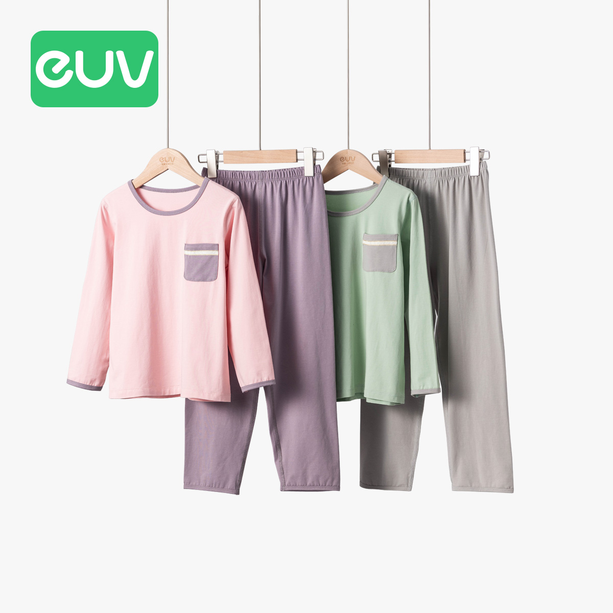 euv children's pajamas girls boys spring autumn pure cotton homewear boys long sleeve summer suit big kids