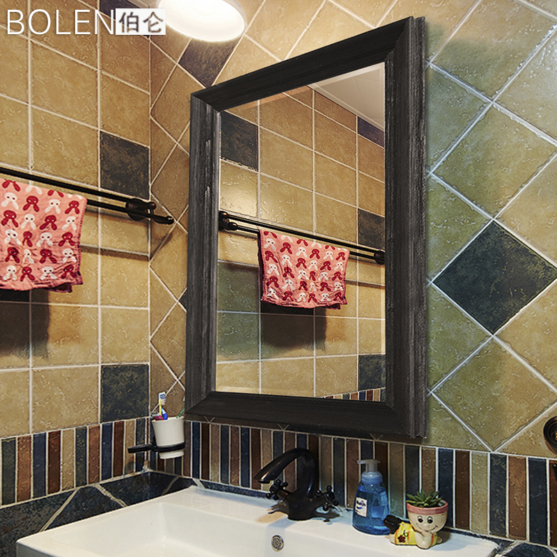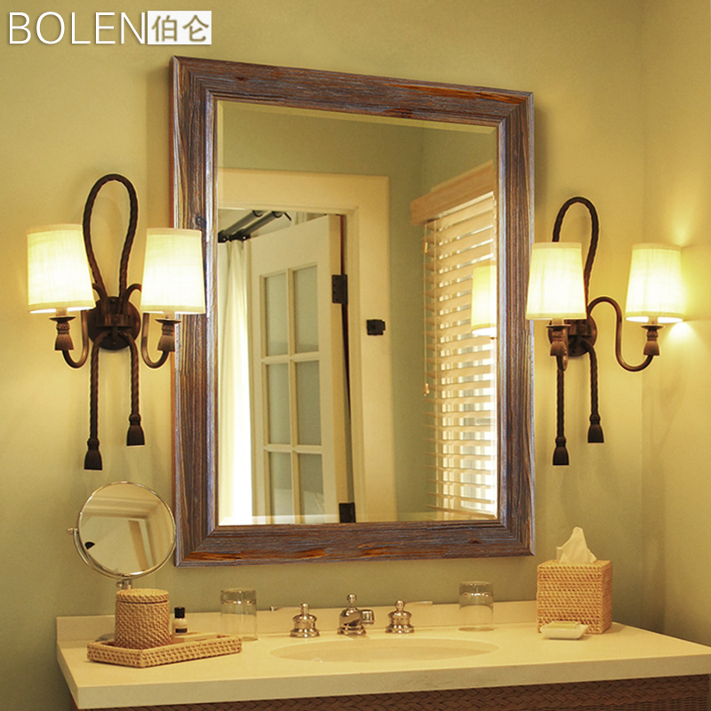BOLEN solid wood bathroom mirror powder room decorative mirror log washstand retro Nordic style makeup mirror