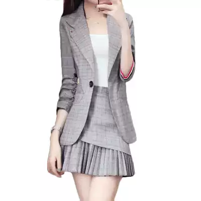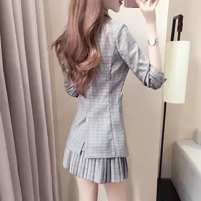 Plaid small suit suit women's 2021 early autumn new temperament pleated skirt two-piece Western style age reduction