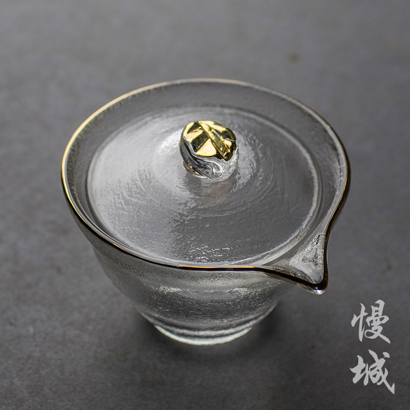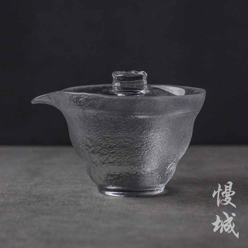 Japanese-style frosted glass bowl with hammer pattern hand holding teapot thickened to tea cup kung fu tea set handmade tea infuser