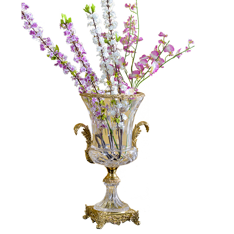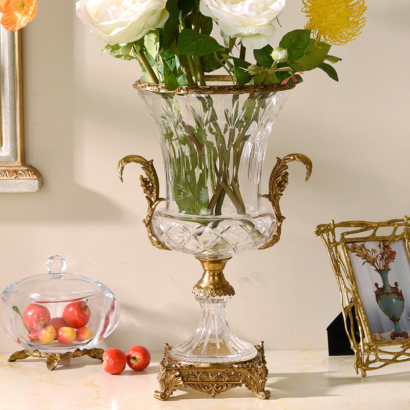 European American crystal with copper vase flower flower arrangement high-grade luxury ornaments Living room entrance home craft furnishings