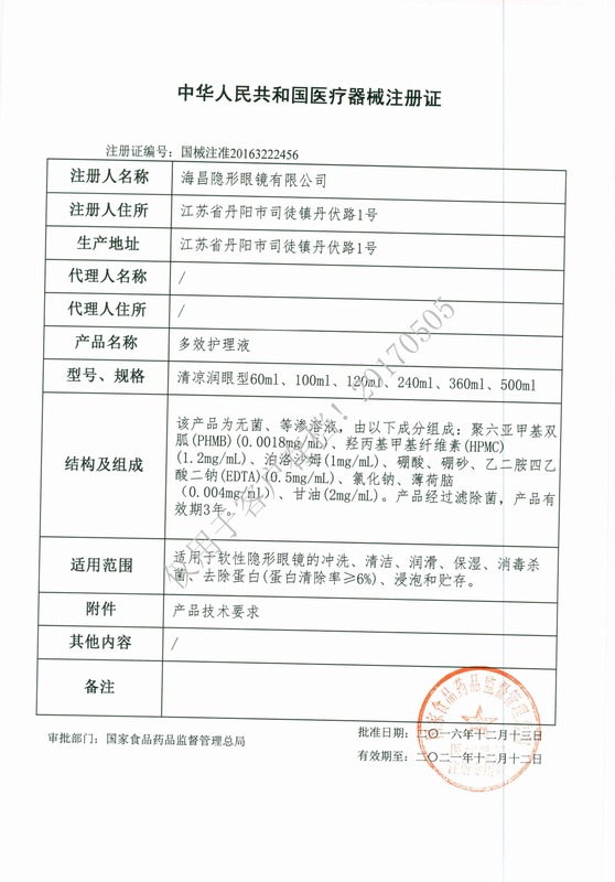 Hai Lien contact myopia glasses multi-effect care solution Sensi 500 120ml 120 color contact vial
